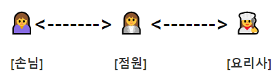 2. 점원이 요리사에게 음식을 요청한다.