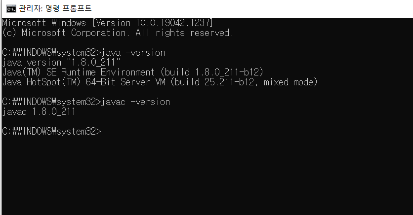 cmd창을 새로 열어서 확인해보면 아래그림처럼 java, javac버전 모두 확인할 수 있다.